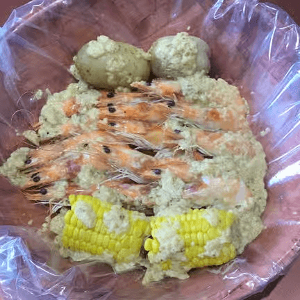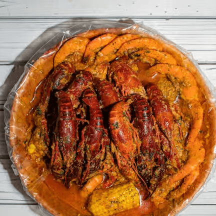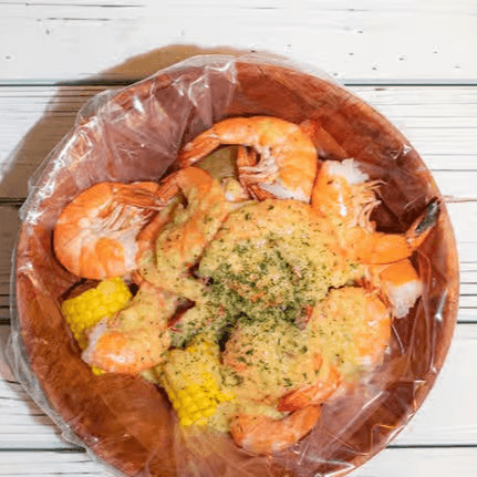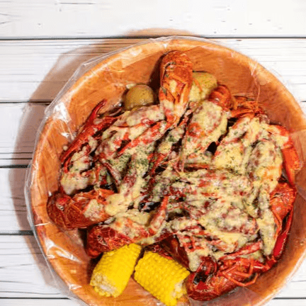 Crawfish (1 lb), shrimp (1 lb) (head-off). Comes with potatoes & corns. Shrimp head off may substitute to mussels, crawfish or clams