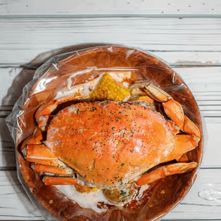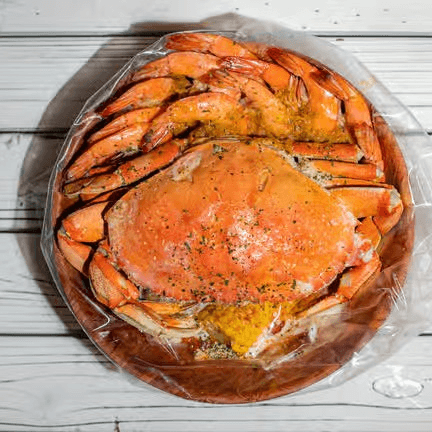 Dungeness crab (11/2 lb), shrimp (1 lb) (head-off). Comes with potatoes & corns. Shrimp head off may substitute to mussels, crawfish or clams