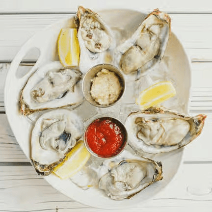 Oyster (6 pieces), cocktail shrimp (6 pieces), snow crab 1 cluster