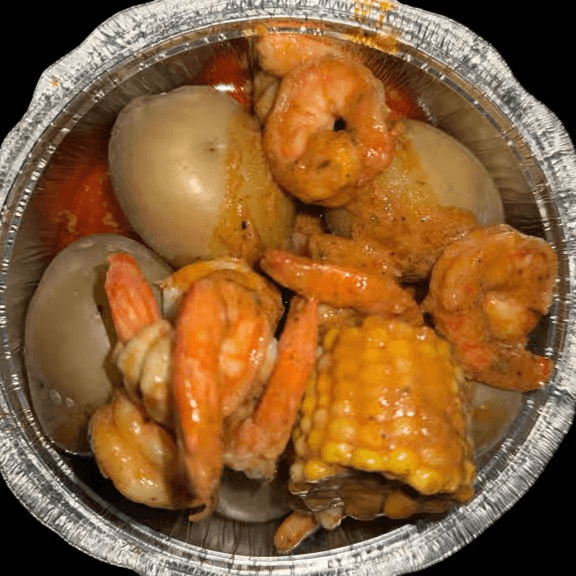 Whole lobster (11/2 lb), shrimp (1 lb) (head-off). Comes with potatoes & corns. Shrimp head off may substitute to mussels, crawfish or clams