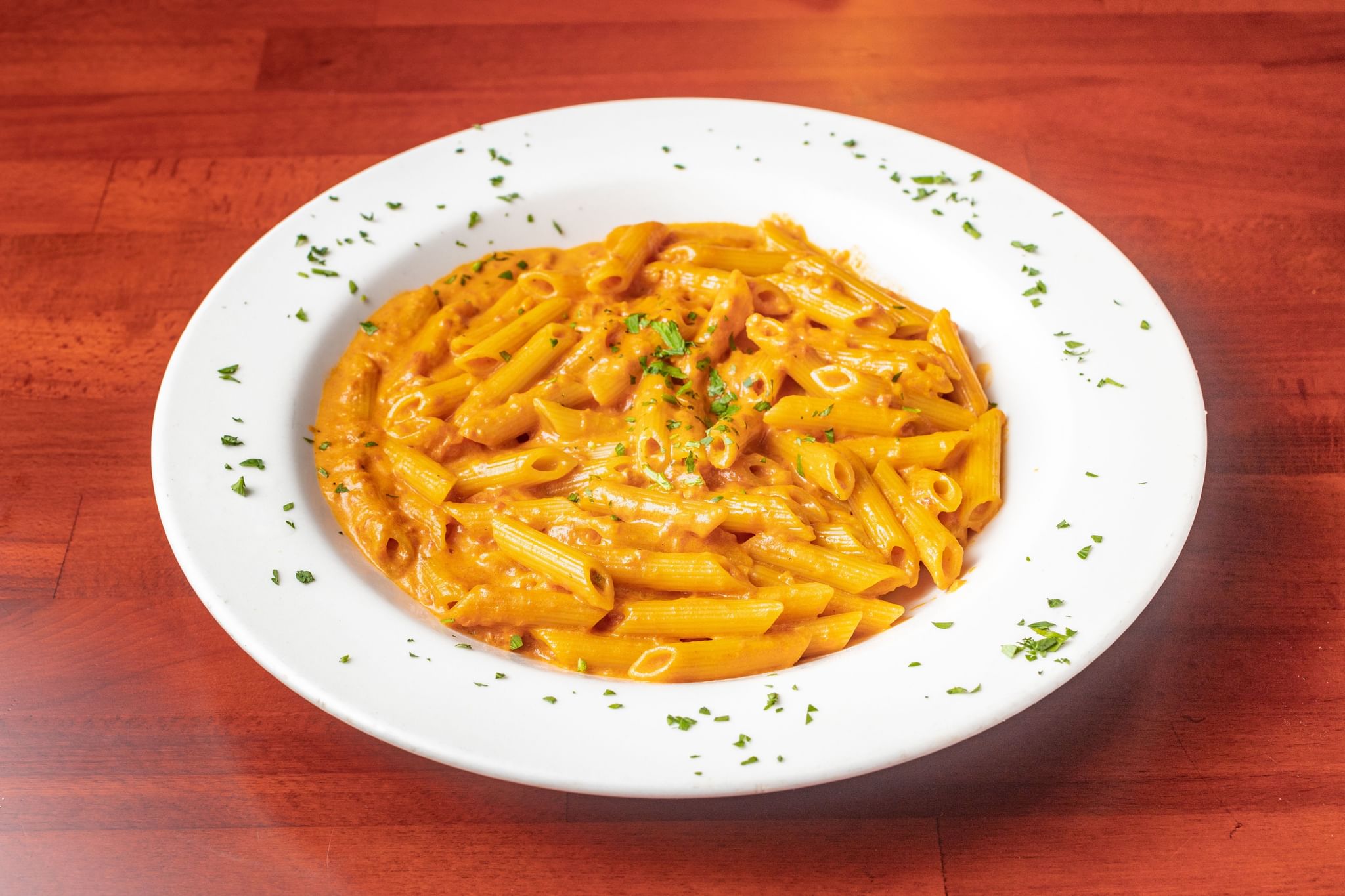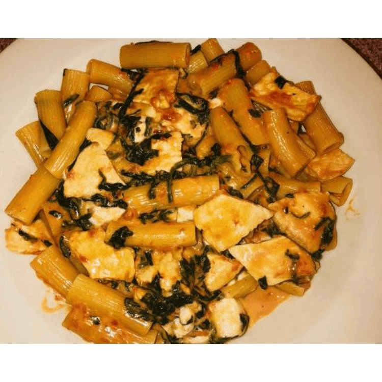 Grilled chicken, toasted with spinach, fresh mozzarella, and a creamy pink sauce. Served with pasta on the side