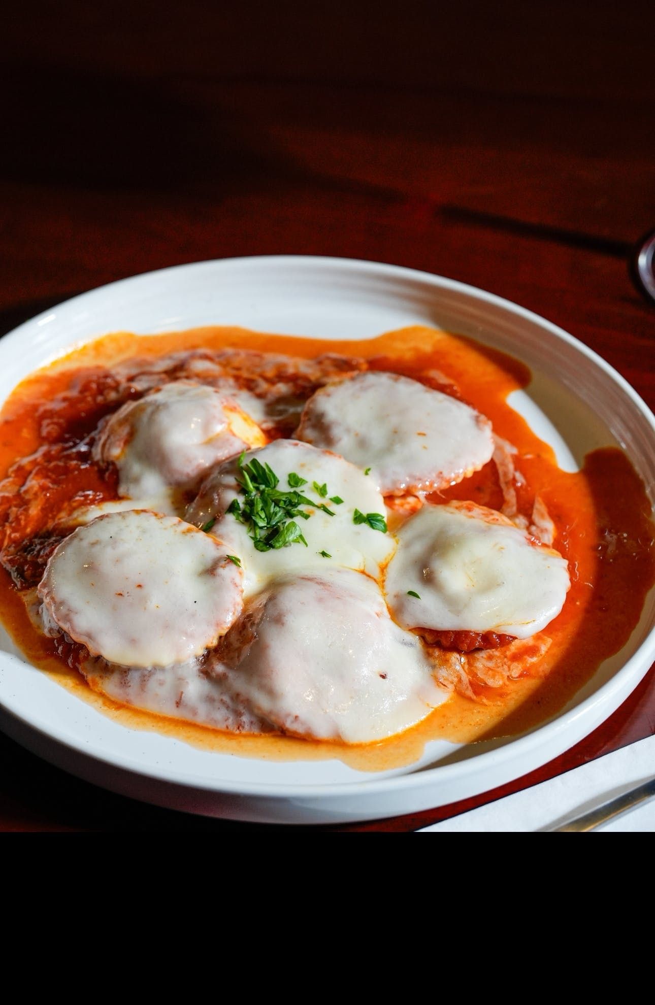Cheese stuffed ravioli in a pink sauce