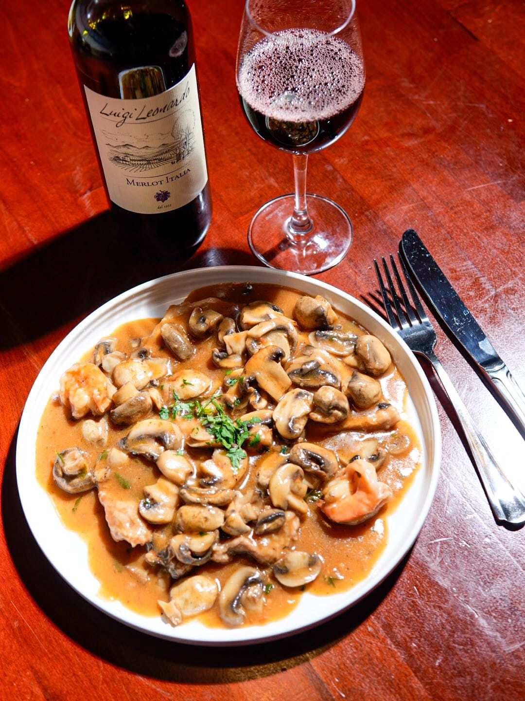 Shrimp, veal and chicken sauteed in a marsala sauce with fresh mushrooms