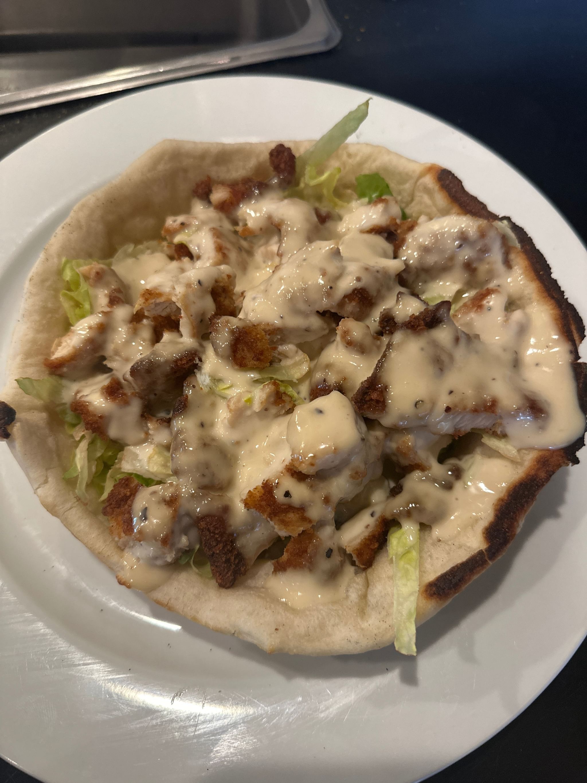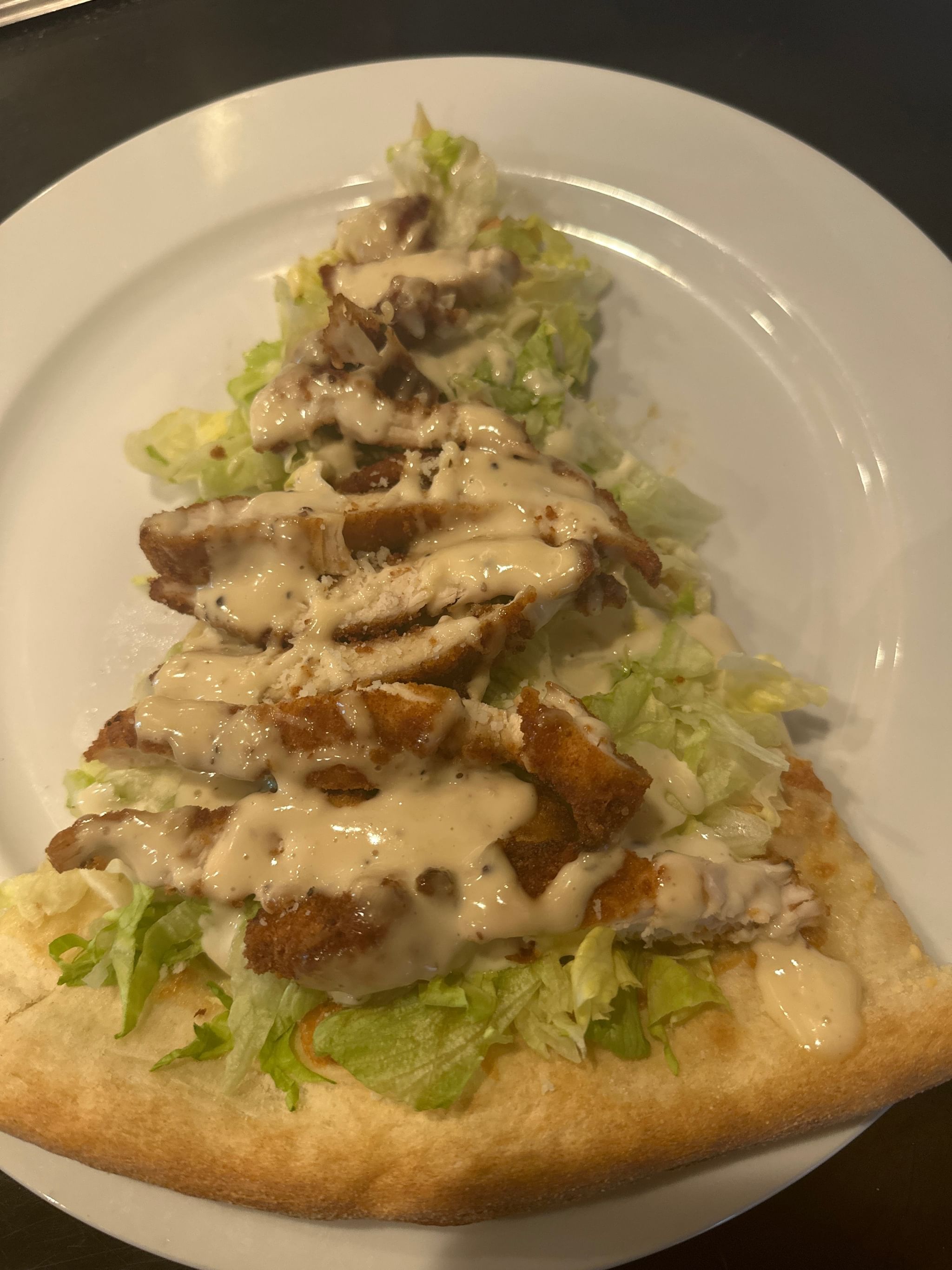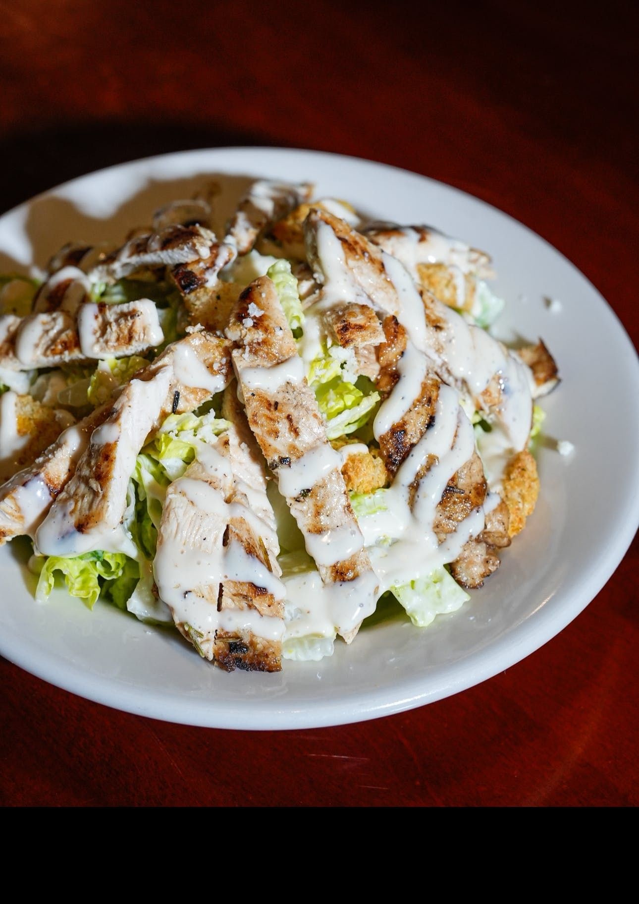 Fresh romaine lettuce & sliced chicken cutlet topped with our own creamy Caesar dressing