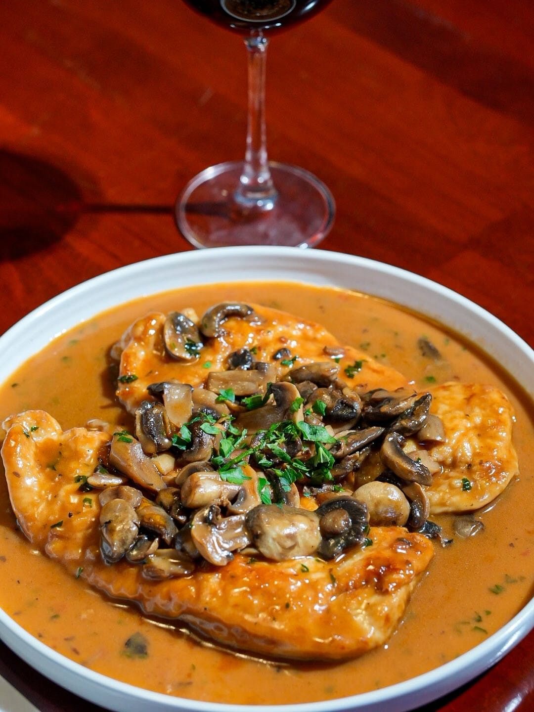 Tender diced chicken sauteed with marsala wine & fresh mushrooms