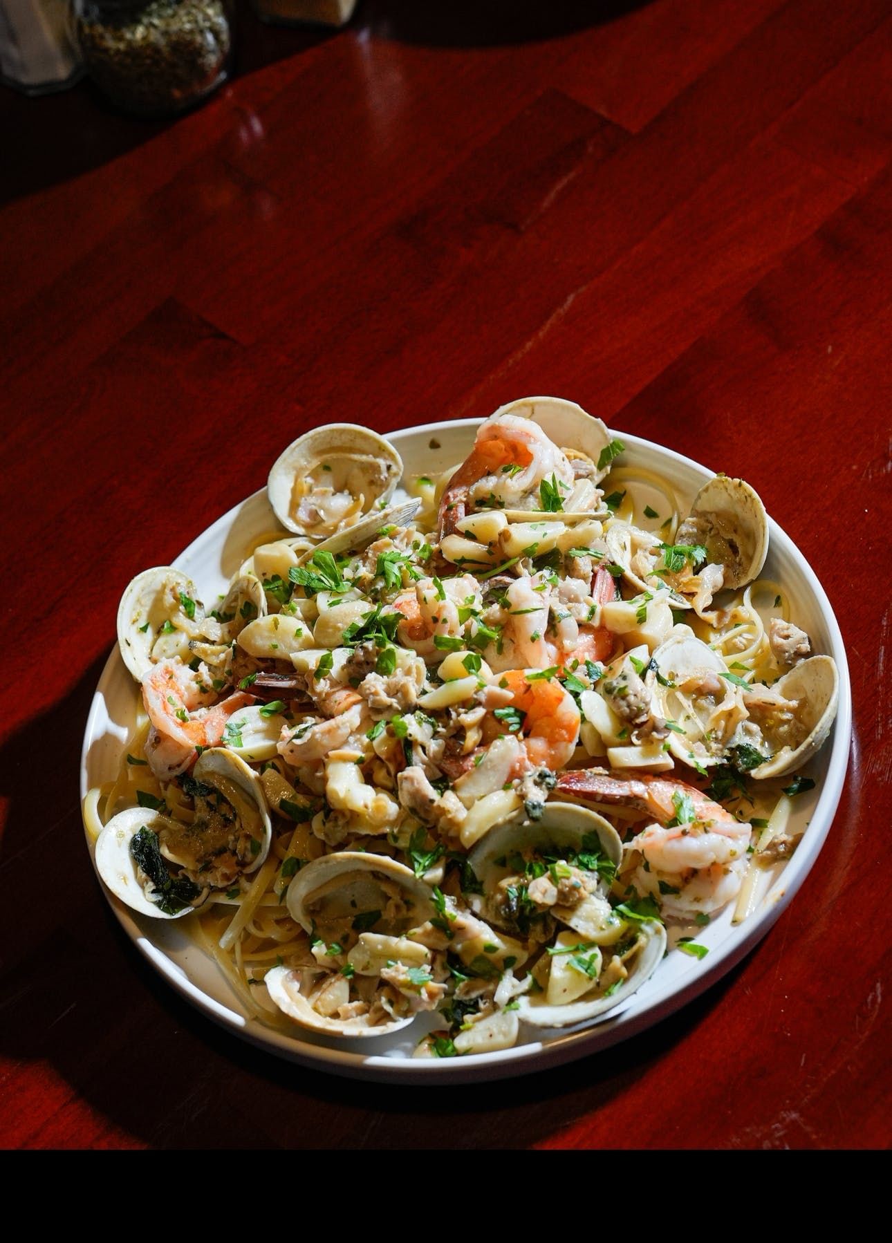 Clams & shrimp sauteed in a white clam sauce
