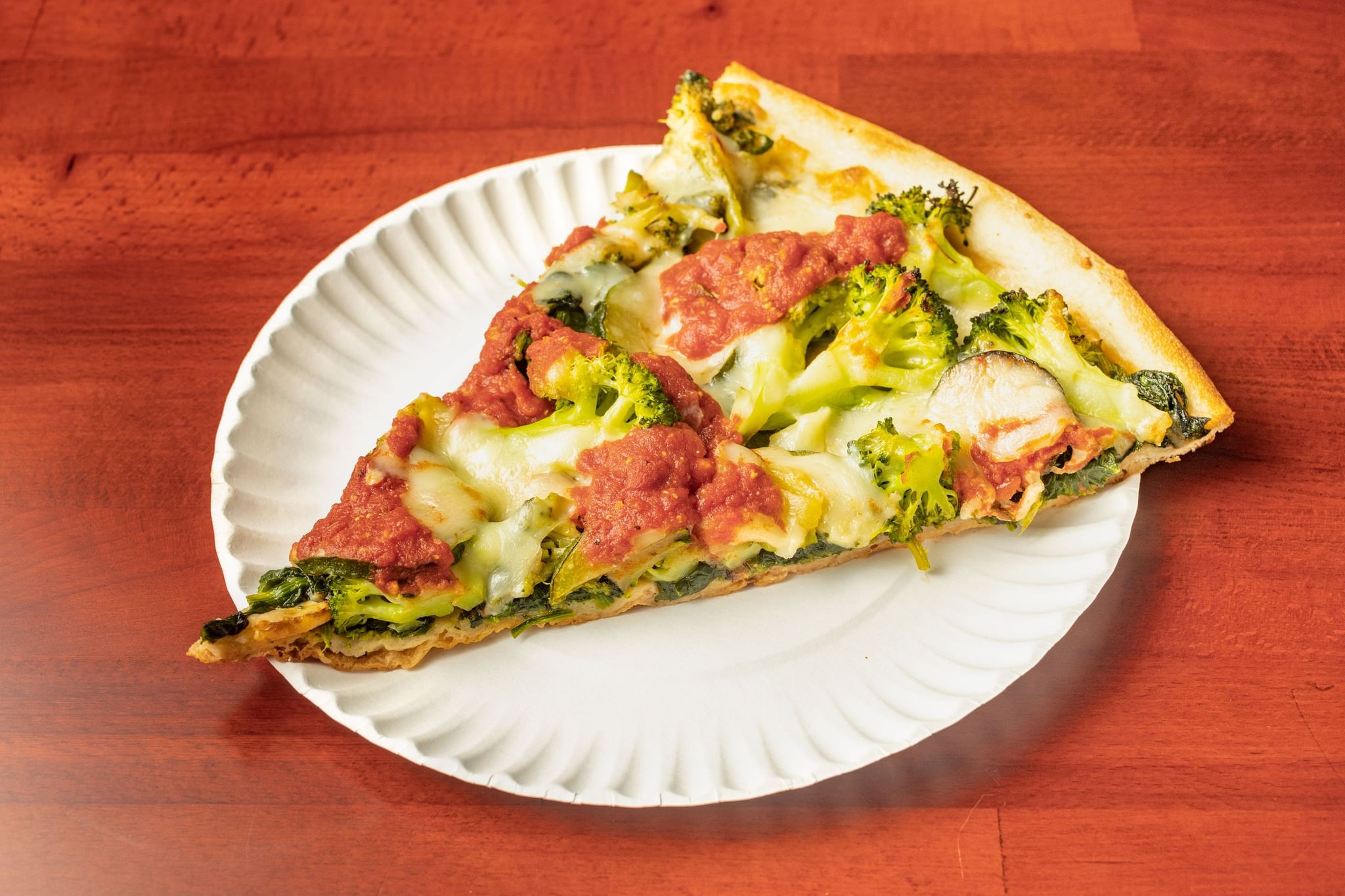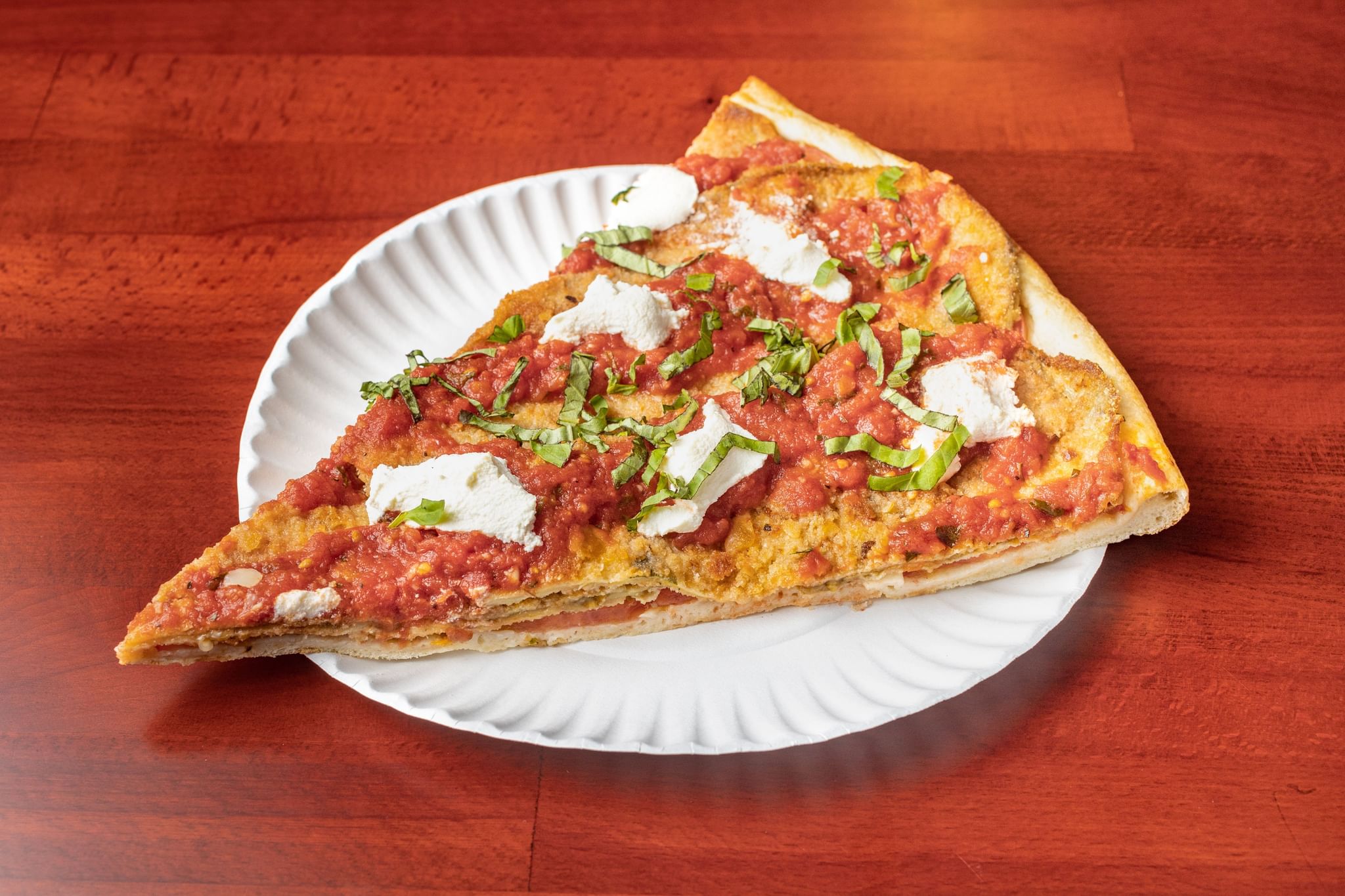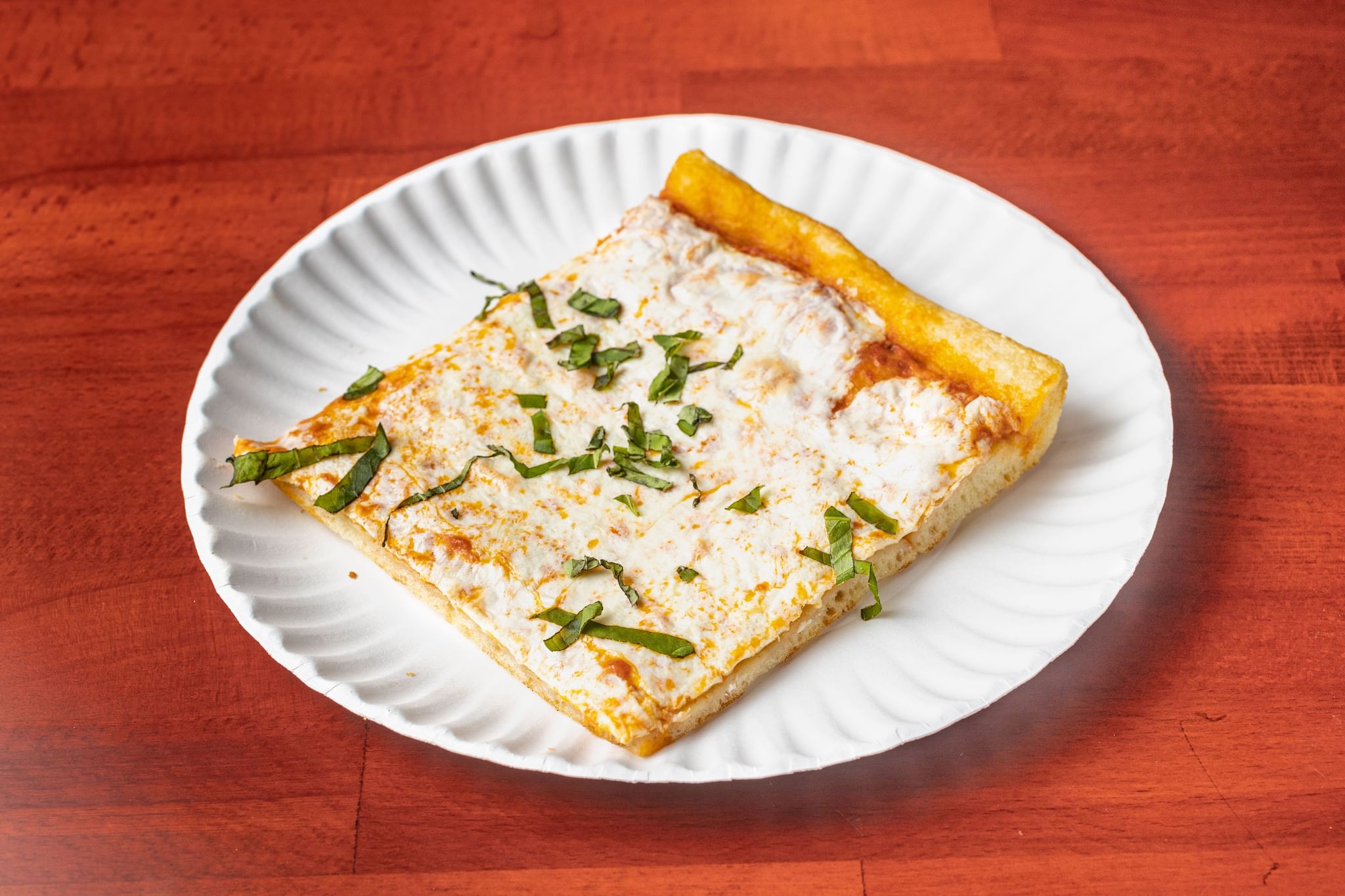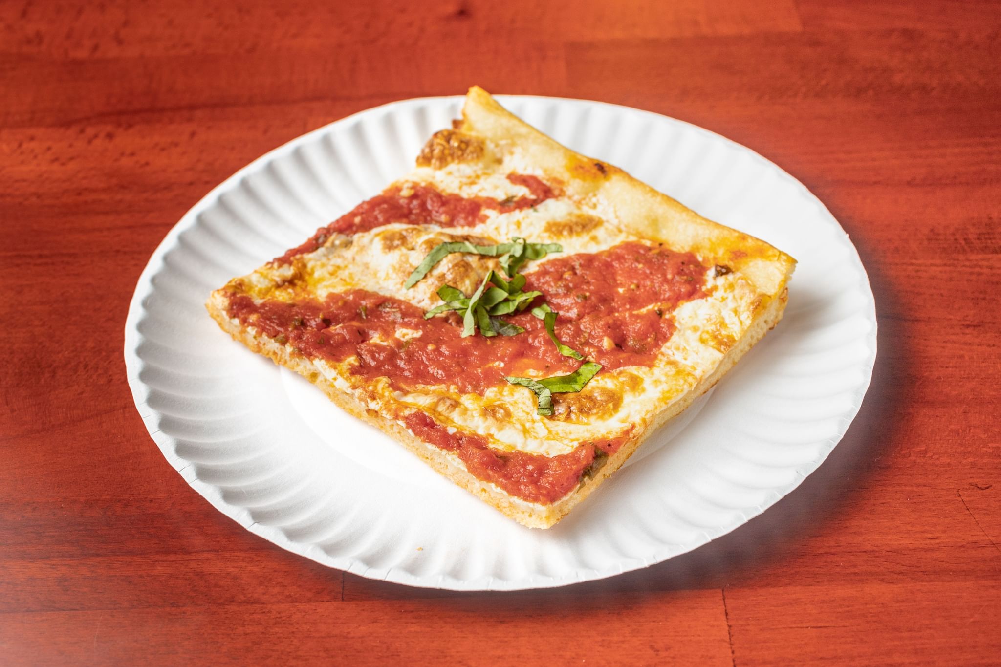 The thin Sicilian crust, topped with diced tomatoes, garlic & basil