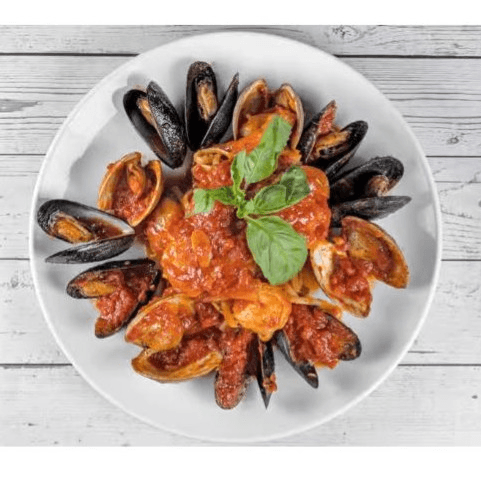 Shrimp, calamari, clams & mussels in a mild marinara sauce