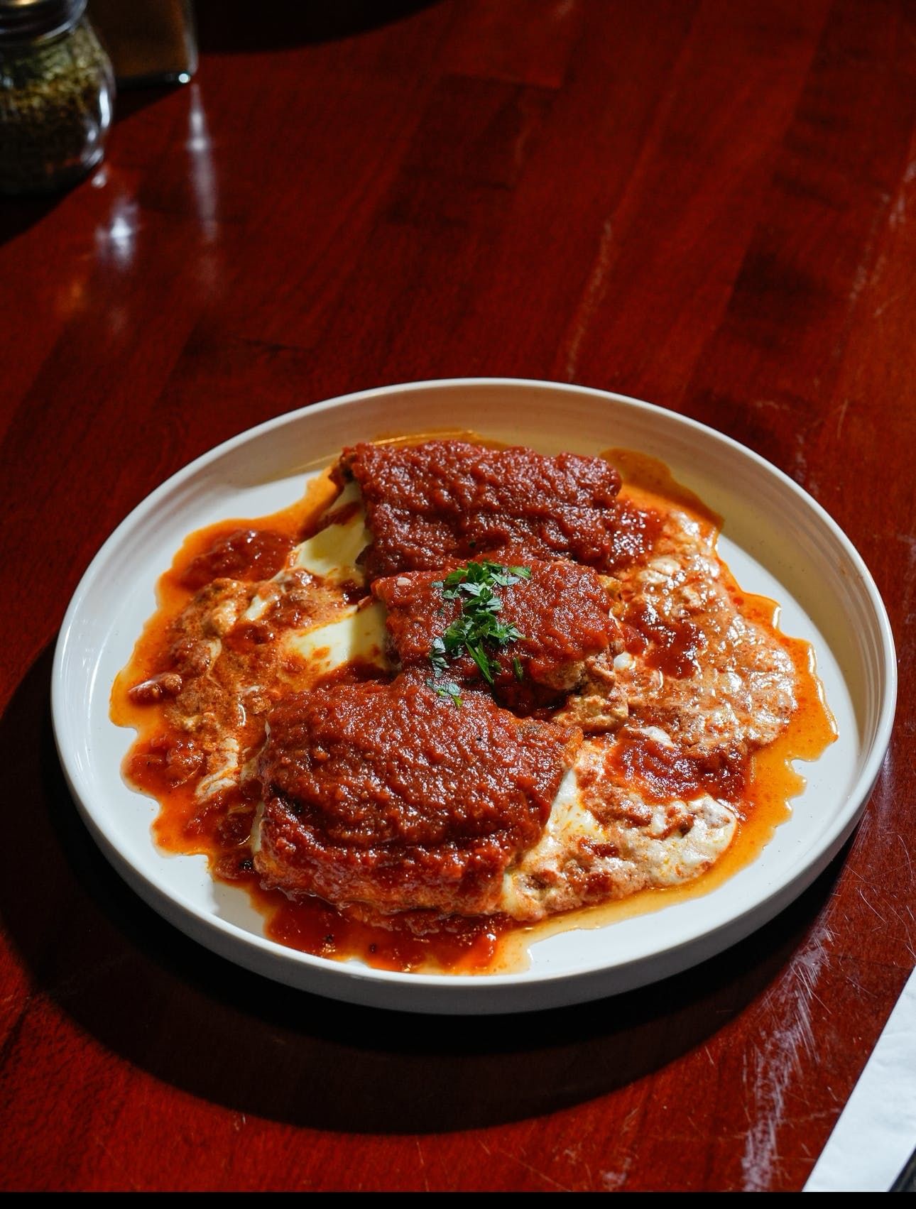 Eggplant stuffed with ricotta cheese and fresh tomato sauce