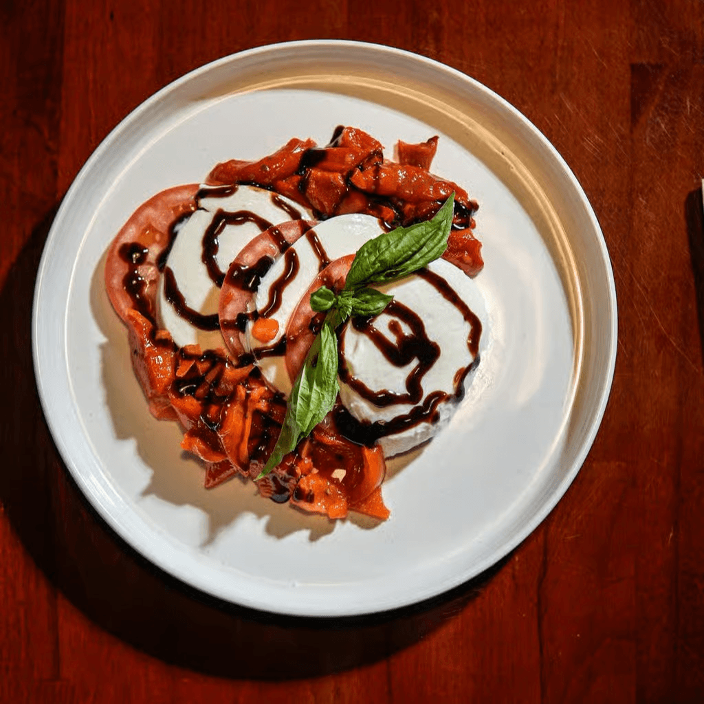 Fresh mozzarella, roasted peppers, and fresh tomatoes