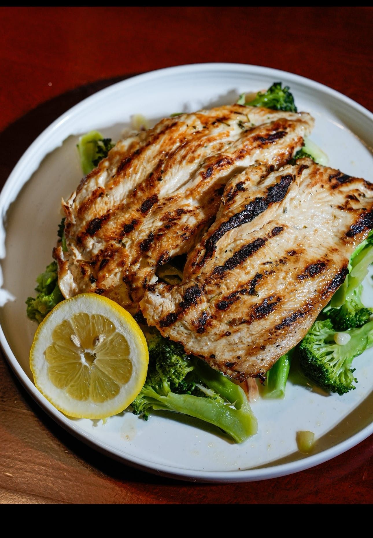 Grilled chicken with broccoli sauteed in garlic and oil