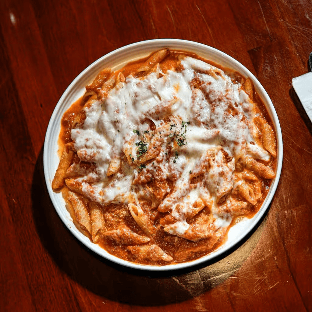 Penne with ricotta, tomato sauce, and mozzarella