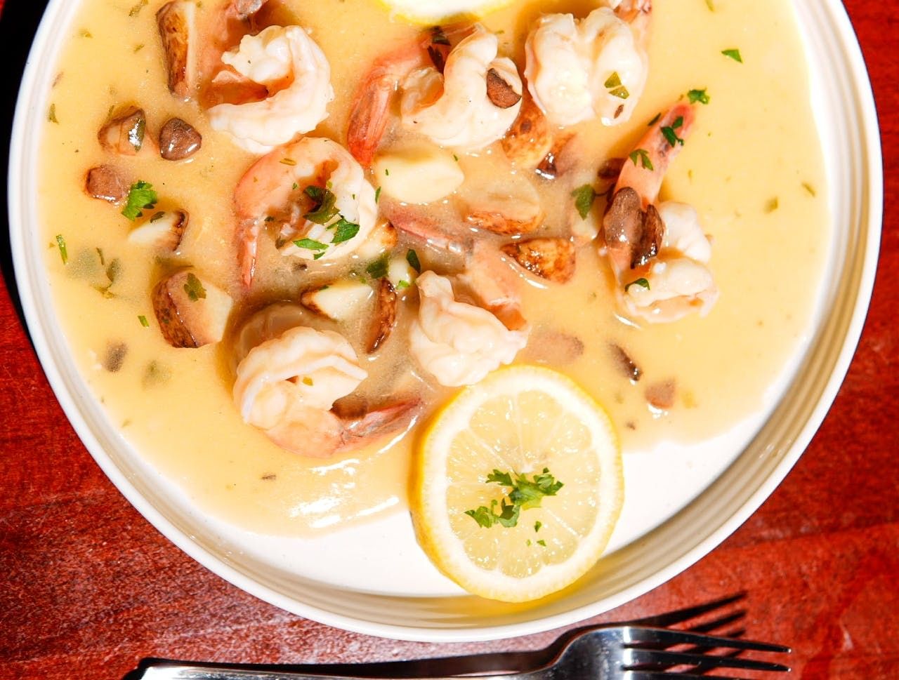 Shrimp sauteed in a creamy garlic, butter, lemon & wine sauce